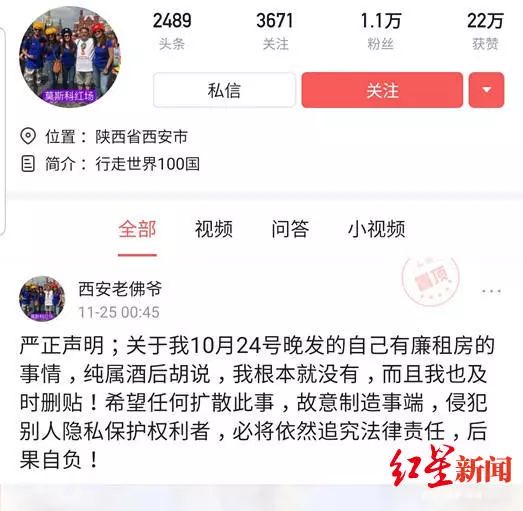 时某告诉红星新闻,发布后不久就将该信息删掉,并也就此事发表声明,“但是有人将这一信息截图并转发,为避免造成不良影响,我当时就联系他说我既没有别墅,也没有廉租房,并要求他删除信息,不存在任何威胁”。