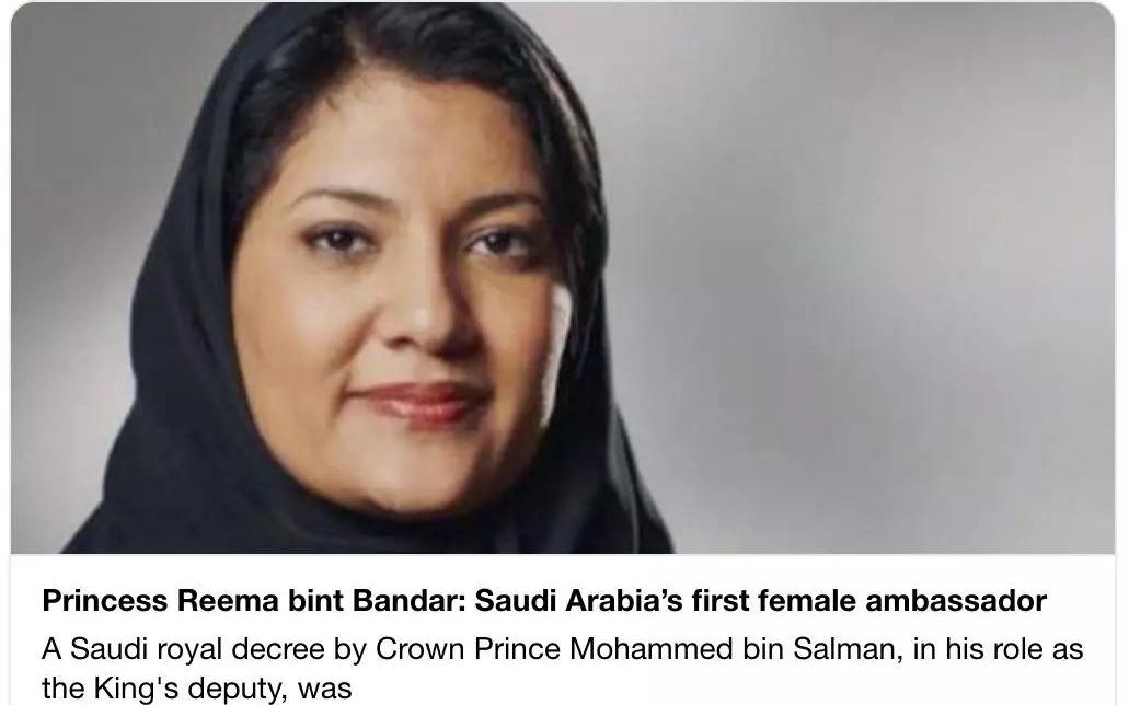 当地时间2月23日,沙特阿拉伯宣布任命丽玛·宾特·班达尔公主为驻美国大使,她也成为沙特历史上首位女性驻美大使。据BBC报道,1975年,班达尔公主出生在沙特首都利雅得,其父亲曾在1983-2005年间担任沙特驻美大使。