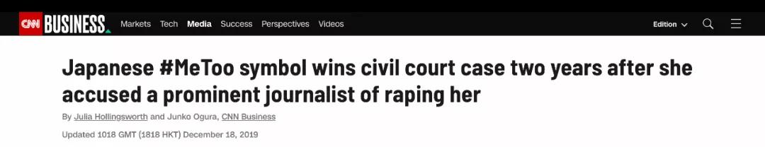 当地时间12月18日,据《朝日新闻》报道,日本东京地方法院对女记者伊藤诗织遭性侵的民事诉讼案作出裁决,判决伊藤胜诉,判处日本东京广播公司原华盛顿分社社长山口敬之赔偿伊藤诗织330万日元(约合人民币20万元)。据报道,伊藤是日本历史上首位公开身份、实名告发性侵者的女性。CNN报道称,伊藤是“米兔运动(Me Too)”的象征。