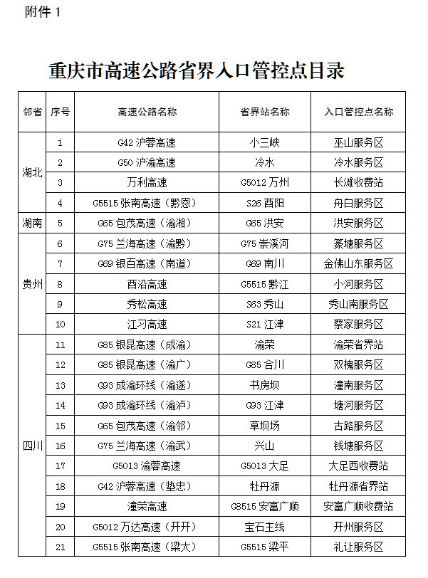 本网2月2日综合讯 (赖流琴 郭联)据重庆市交通局公路养护管理处消息,为落实市新型冠状病毒感染的肺炎疫情防控工作领导小组要求,切实保障人民群众生命安全和身体健康,提升高速公路省界防疫管控点防控效果,有效阻断病毒传播途径,对进入我市的鄂籍车辆及驾乘人员一律劝返,对其它非渝籍车辆通行我市高速公路,实施更严更实更细的管控,决定从2020年2月4日零时起实行预约通行方式,现通告如下: 一、预约对象 (一)目前在鄂拟返渝的渝籍人员不适应本次预约通行规定,按照我市统一要求原地驻留。通行时间另行通知。 (二)过境我市的车辆驾乘人员。 (三)返渝生活、工作、上学的车辆驾乘人员。 二、预约条件 (一)驾乘人员过境我市的,由本人凭有效证件自行在预约平台申请。预约申请可于2月2日零时起提出。 (二)驾乘人员返渝生活的,由本人提供在渝居住证、重庆居民身份证等有效证件,自行在预约平台申请。预约申请可于2月2日零时起提出。 (三)驾乘人员返渝工作的,由本人在渝工作单位在预约平台上预约申请。按照我市复工有关规定,预约申请不应早于2月7日零点提出。 (四)驾乘人员返渝上学的,由本人在渝学校在预约平台上预约申请。按照我市复课有关规定,预约申请不应早于2月15日零点提出。 三、预约方式 至少提前2天,通过“重庆高速ETC”微信公众号进行预约申请,预约内容包括进入时间、入口、出口等信息(出入口名称见附件)。 四、通行管理 过境车辆预约成功的,不得在重庆市域高速公路任何出口下道行驶。违规在我市高速公路下道的,由出口所在地区县按我市相关规定对驾乘人员实施至少隔离观察14天。 入境车辆预约成功的,按预约时确定的入口进入和出口下道,否则不得通行。出口所在区县政府应严格加强管控,对入境车辆的驾乘人员按我市相关规定一律居家或在居住地至少隔离观察14天,由所在单位、学校、社区搞好服务管理;对体温测试异常的由所属地政府按规定处理。 未预约或者预约不成功的车辆,不得进入省界管控点的所有入口。 五、其他事宜 其他管控措施,仍按重庆市新型冠状病毒感染的肺炎疫情防控工作领导小组交通运输防控组《关于实施高速公路省际入口管控的通告》执行,由各区县政府按照属地责任从严做好疫情防控工作。 重庆市新型冠状病毒感染的肺炎疫情 防控工作领导小组交通运输防控组 2020年2月1日 |