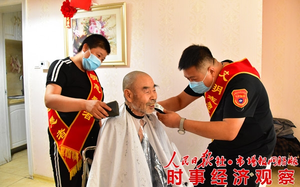 本网7月8日讯(通讯员 贾存新)“老爷子,您把头稍微往右边偏一下……”近日,米东区税务局驻同心社区工作队员和社区工作人员邀请辖区理发店志愿者组成志愿服务队伍帮助同心社区70岁以上老人和行动不便的居民提供免费上门理发服务。 剪发现场,志愿者们耐心询问老人需要的的发型和要求,然后拿着电推子、剪刀、梳子等,紧张有序地忙碌着,有的给老人理发,有的给老人刮胡子,有的拿着海绵刷老人身上头发,尽量为每一位老人服务到位。在志愿者的巧手下,老人们脸上露出了开心的笑容。 “太感谢社区志愿者,帮助我们老两口理发。老头子生病半瘫,行动不便,在家走动都要人扶着,平时也出不了门,我每次给老伴剪完头发都出一身汗,今天你们到家里提供了免费理发,真的很贴心,老伴虽然不能说话,但也能看出来他很开心。”同心社区居民强淑芳看着给老伴剪头发的志愿者激动的说。 米东区税务局驻同心社区工作队队长高翔说:“此次活动,为居民们提供了贴心的便民服务,营造了敬老爱老的良好氛围,让居民感到了温暖。今后,同心社区工作队和社区将继续秉承为民服务的初心,继续发挥志愿者服务队的力量,将各项公益活动延续下去,为辖区居民带来更多有意义的志愿服务活动。