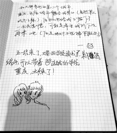 开车中的蔡小胖 这个厚厚的留言本里装着162个人生故事 乘客们给蔡小胖的留言 本网5月31日综合讯 “所爱隔山海,山海皆可平。”一对夫妇这样描述他们修成正果的异地恋。 “很开心结婚了,老公是法国人,很绅士也很浪漫。”刚领完证的女孩没忍住喜悦,抓住各种机会夸老公。 身患癌症的中年男人,承受病痛之余,仍然不忘鼓励别人去“开展有意义的关系”。 …… 一个多月时间里,21岁网约车司机蔡小胖(化名),通过让乘客在本子上留言的方式,聚合了162位乘客的人生故事,关乎爱情、亲情、友情。 “一切从这个留言本开始,也在留言本结束。”5月29日晚,蔡小胖完成自己最后一单网约车工作,这个4月23日放置于车上的留言本在写满留言后,结束了自己的使命。 蔡小胖说,他把这些细腻的情感和奋进的话语收集下来,是为留给或许疲惫的乘客,也是为留给曾经迷茫的自己,还准备送给正在成长中的女儿。 “很开心结婚了,和老公刚办完证 老公是法国人,很绅士也很浪漫 希望一直幸福下去” ——Flora &David 这条留言写于4月23日,是蔡小胖收到的第一条陌生人留言。 “我到现在都还记得,那个女孩脸上洋溢着的灿烂笑容,和对美好生活的深情向往。”昨日上午,在江北区海尔路见到身高1.73米、体重约200斤的蔡小胖时,他兴奋地对记者讲述起第一条留言带给他的感动。 那天下午1点左右,按照订单要求,蔡小胖来到渝北区三亚湾金石大道接客人。客人上车后,他快速打量一番,发现对方是穿着西装的一男一女,女孩一口普通话,男孩是高大帅气的外国人。 交谈中蔡小胖得知,女孩Flora是重庆人,和外国男孩David都在海南工作。当天,是他们回到重庆办理结婚证明的日子。 “也许是太过兴奋,又可能是外国人表达情感更直接,他们在车上还拥吻起来,看得我都有点不好意思。”蔡小胖记得很清楚,一路上女孩都沉浸在甜蜜的情绪里,他对他们说了句“祝福你们百年好合、早生贵子”后,递上了留言本,没想到女孩没有任何犹豫,直接在本子上就夸起老公。 后来,蔡小胖把这对新婚夫妇送到了观音桥,“听说他们是去吃火锅庆祝了。” “今年的网约车生活 让自己好好沉淀下来 想想以后要做什么、想做什么” ——自由的胖子 自由的胖子,就是蔡小胖本人。 为何要收集陌生乘客的留言?蔡小胖没有直说,而是先给记者讲起了他的故事。 蔡小胖老家在涪陵,是一名未婚单亲爸爸,女儿彤彤2岁半。此前,蔡小胖在自家经营的物流公司工作。去年下半年,他跟一位朋友学会了打牌,此后连续3个多月沉迷其中,直到输光积蓄,父母后来发现了此事,“被父母严厉训斥后,我才惊觉自己这3个多月有多过分,懈怠了工作,忽视了家人,对女儿也没怎么关心。” 蔡小胖戒牌瘾的同时也在反思:“我觉得不能继续呆在家里工作,那样我太容易懈怠和偷懒了。”他最终决定,到主城开一段时间网约车,“希望在新的工作体验中,找到新的方向。” 今年3月,蔡小胖成为主城一名网约车司机。最初,新工作也没能拯救他内心的沮丧和迷茫,直到3月中旬一个雨夜。那天晚上,他搭载了一位年轻妈妈,二人聊到了孩子这个话题,蔡小胖讲述了自己的迷茫和对女儿的愧疚。女乘客忽然向蔡小胖提议,可在车上设置一个留言本,让乘客写上想写的话,“其实每一位坐你车的乘客都有自己的故事,都有独特的生活经历,都有一路走来的智慧,如果你能搜集一些他们的感言,一定对你有帮助。” “我的好友陈苇也很支持这个想法,留言本也是她送给我的。我那时就打算,等留言本写满,就结束网约车工作。”蔡小胖说,从4月23日那天起,副驾驶座前的搁板上,就有了这个留言本。他自己也在留言本上留言,他说:“每天和不同的人见面,和不同的人交流,既然生活很无趣,就让自己把生活变得有趣!” “做有意义的事 过有意义的生活 开展有意义的关系 你一定会获得幸福” ——刘姓乘客 蔡小胖对这一条留言印象深刻,因为这是一名患有肺癌的男乘客写给他的。 5月28日下午,小胖接到一个订单,前往陆军军医大学大坪医院接乘客。车门打开后,上来一位身材高大、拿着公文包的中年男性,大约50岁。闻着车里有一股烟味儿,男乘客让蔡小胖开窗透风之余,还劝他少抽烟。两人的聊天自此开始。 “下班啦?” “没有,过来拿药。” “怎么了,身体不好吗?” “肺癌,才查出来的。” 车里一阵沉默。片刻之后,男乘客才慢慢讲起他的故事。他在海南工作,每半个月回来一次,此前家人一直让他体检,他都没当回事,直到体检卡快过期,他才去体检,一查竟查出肺癌。男乘客觉得亏欠了女儿,现在把更多时间花在了陪伴女儿上。从留言中,蔡小胖得知,男乘客姓刘。 “他劝我要去开展有意义的关系,才会获得幸福。”蔡小胖意味深长地说,自己经历了一次失败的感情,下一次,他一定会格外珍惜。 昨日,记者还联系上坐过蔡小胖网约车并与之成为朋友的陆女士。她告诉记者,起初她并未想好在留言本上写些什么,蔡小胖理解她:“不想留言也没关系,本子上有其他乘客的留言,你愿意的话可以看看。” 陆女士说,自己当天翻看了这个留言本后,心情变得豁然开朗,“我加蔡小胖微信时给他说,以后有精彩的留言别忘了拍给我看。”如今,陆女士已看过百余条留言,有祝福,有鼓励,有鸡汤,有坐车评语,有追星语录等等。外地来渝旅游乘客留言最多,他们除了书写对山城的喜爱,甚
