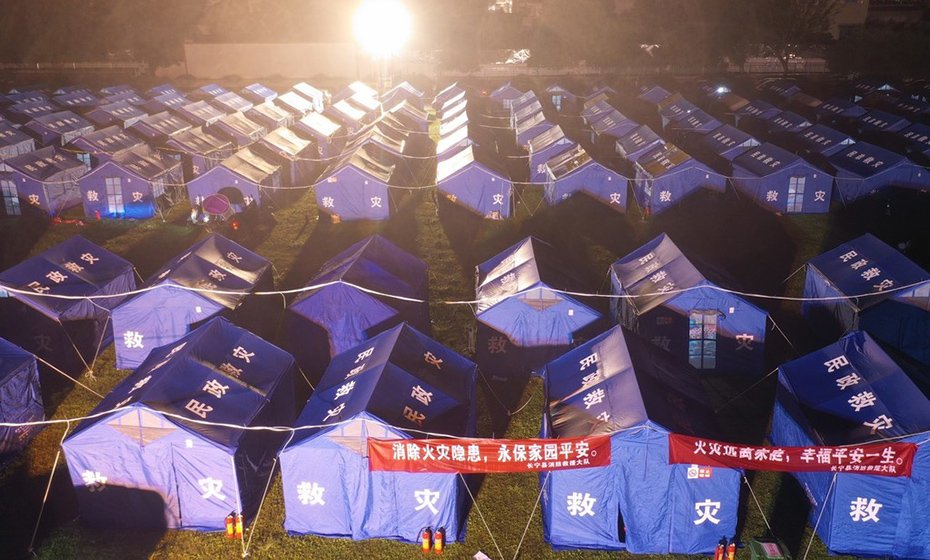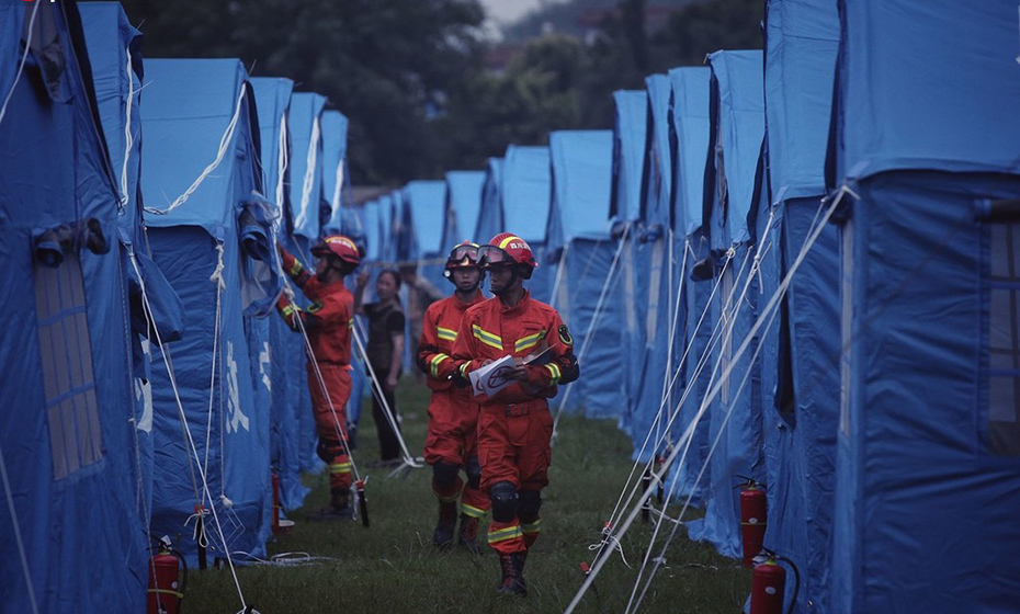 四川宜宾6.0级地震:2019年6月18日,四川宜宾长宁地震第二天,在震中双河中学操场上,一顶顶救灾帐篷拔地而起,灾民夜晚安然入睡,重回宁静。