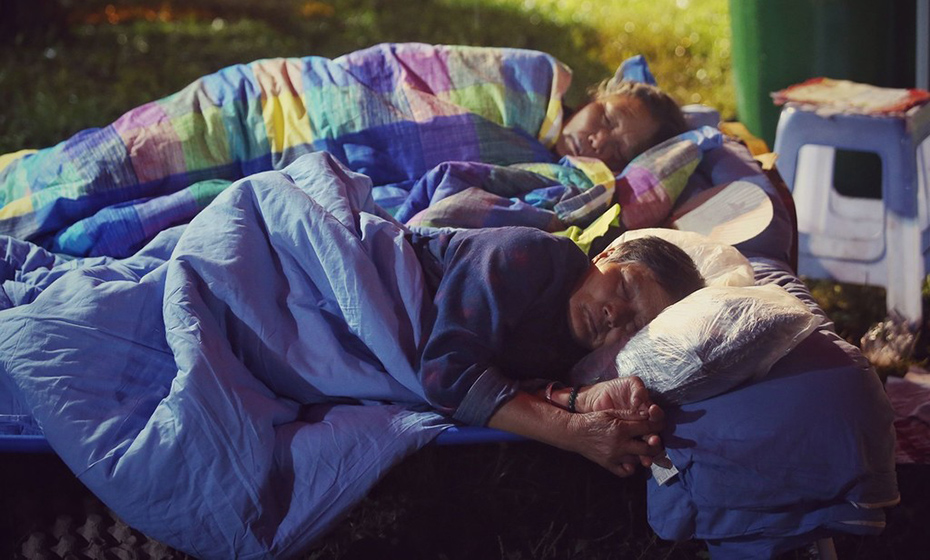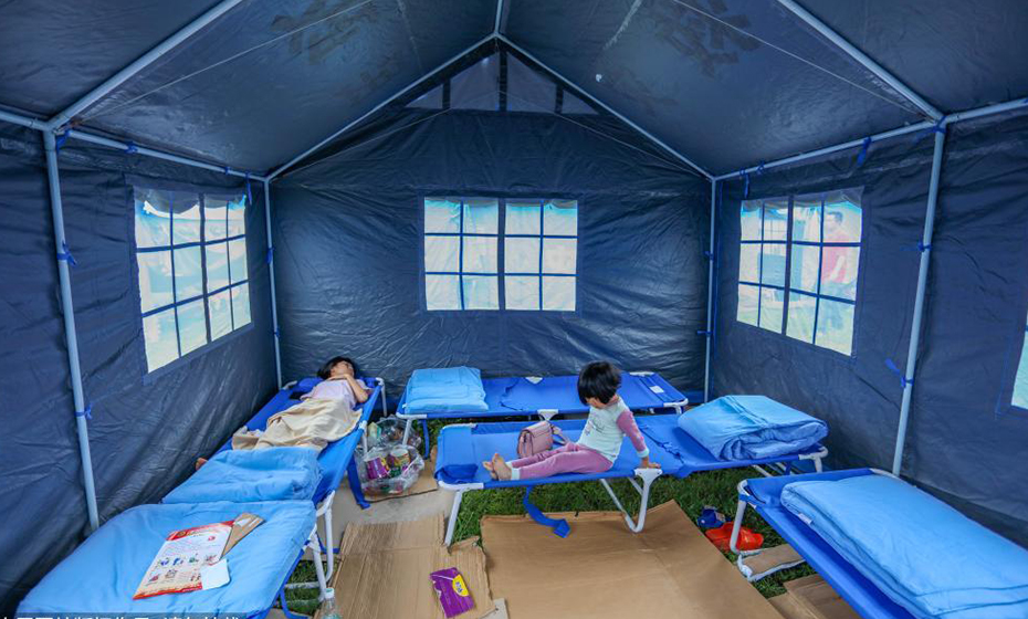 四川宜宾6.0级地震:2019年6月18日,小朋友躺在临时的床铺上休息。