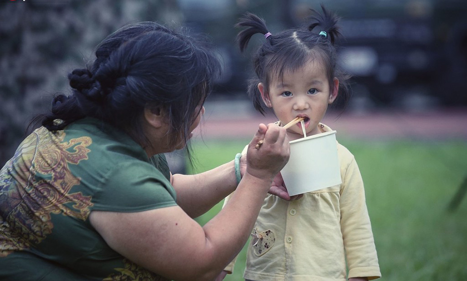 四川宜宾6.0级地震:6月18日傍晚,四川双河中学临时安置点,家长在给女儿喂饭。