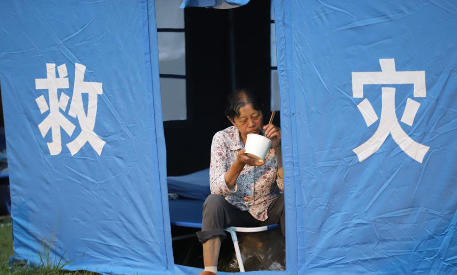 四川宜宾6.0级地震:6月18日,在长宁县双河镇双河中学安置点,受灾群众正在吃饭。