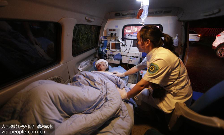 四川宜宾6.0级地震:6月18日,四川长宁县双河镇,医务人员正在对伤员进行救治。胡鹏/摄