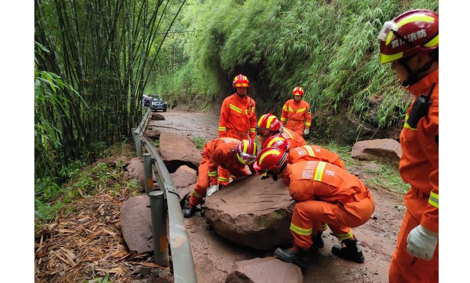 四川宜宾6.0级地震:6月18日7时许,遂宁消防救援支队兵分三路前往铜锣镇排查受灾情况,清理前进路上垮塌的山石。