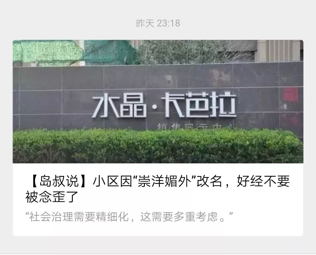 昨日,人民日报海外版微信公号“侠客岛”就此事表示,一个挺好的想法,如果不能按照令人信服的逻辑推进,如果不能按照合法依规的程序落实,那么就容易引发物议沸腾,并希望好经不要被念歪了。 华商报梳理了西安市民关注的一些热点问题,值得各地民政部门参考: 问题1:这些小区名前期是否在政府备案,现在突然要求改名,是否涉及成本呢? 问题2:“崇洋媚外”、“怪异难懂”、“刻意夸大”、“封建迷信”统统没有一以贯之的定义,都是大而化之的形容词,缺乏细节上的解释,作为“办法”的标准如何细化? 问题3:小区改名以后房产证要改吗?是否会造成交易上的不便?还有身份证、户口簿上的信息,如何变更呢? 问题4:公示的名单市民不认同怎么办? 问题5:公司商业注册地址发生变更,是否需要变更工商、税务等相关资料登记信息?工商、税务部门能否设立变更手续绿色通道? 问题6:导航软件、订餐软件、网络购物地址变更是否带来不便?快递收不到了,怎么办呢? 问题7:西安市清理这些名字的程序是什么? 问题8:公示后,什么时候开始申报新的名字? 问题9:新名字由谁起呢? 问题10:申报的程序是什么? 在长安街知事看来,“清理不规范地名”初衷是好,但过程并不仅是改个名字这么简单,不能忽视调研、公示、征求意见等环节,重要的是合法依规地开展,否则容易滑向形式主义的境地。 来源:长安街知事