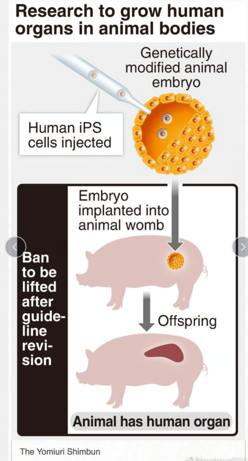 其实,一些使用“人兽杂交”这一噱头报道了日本这一科研情况的媒体,也在他们报道的内文部分印证了这些科普账号的说法,即这种所谓的“人兽杂交”实验并不是什么人类与动物交配,而是将一种人体干细胞引入到动物胚胎中,为的是长出人体器官,从而令其成为人体器官移植的来源之一,以解决人体移植器官短缺的问题。