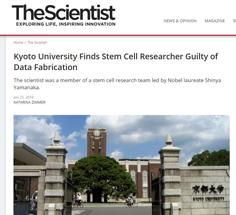 ▲图为2018年是京都大学被爆iPS细胞研究中额数据存在造假问题 来源:环球时报