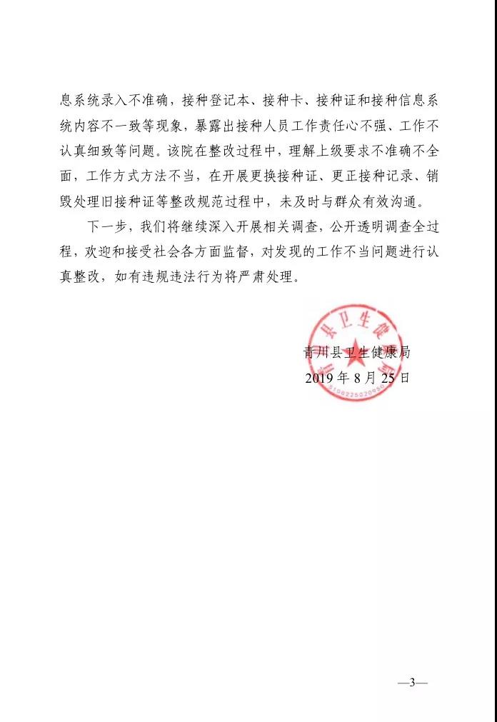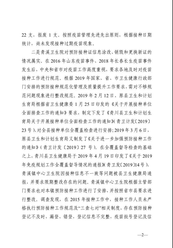 25日晚,青川县卫健局就“青溪卫生院修改疫苗接种记录”一事发布最新情况通报,称尚未发现接种过期疫苗现象。以下为通报全文: