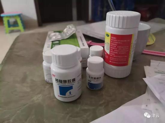茶几上除了老许的茶缸外,还有装着七八个盒药的白色塑料袋,这是老许每天必吃的。老许指着电视柜说:“那是媛媛的。”记者发现,电视柜上摆放的药盒不比老许的少。