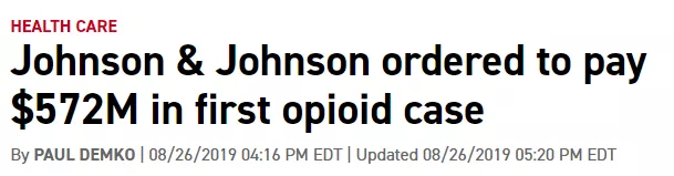 对此,在今年8月,美国俄克拉何马州判决美国强生向州政府赔偿5.721亿美元。强生表示将上诉。