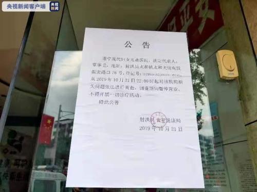 目前,涉事医院已停业整顿,相关部门责任人员正在接受调查。下一步,射洪县公安局将对该案进一步深挖彻查,并密切配合射洪县纪委监委开展工作。