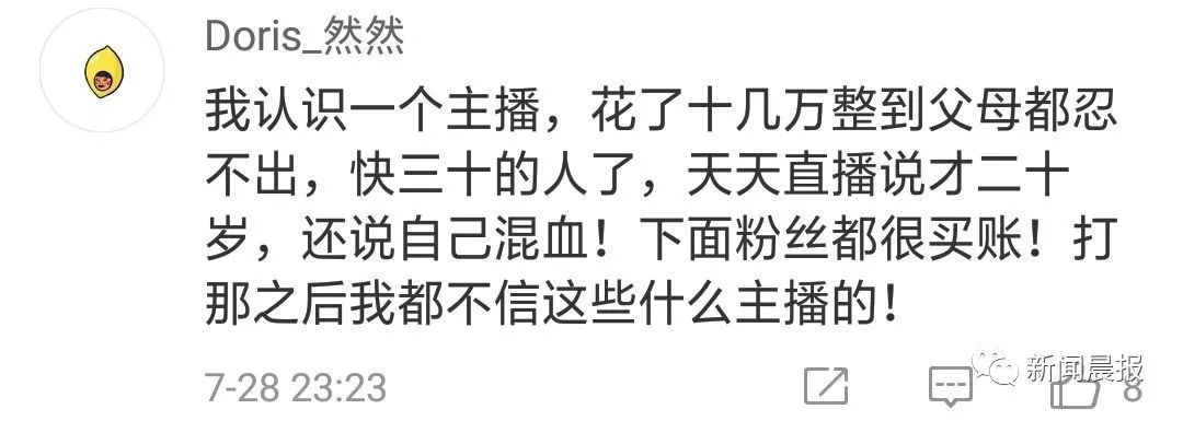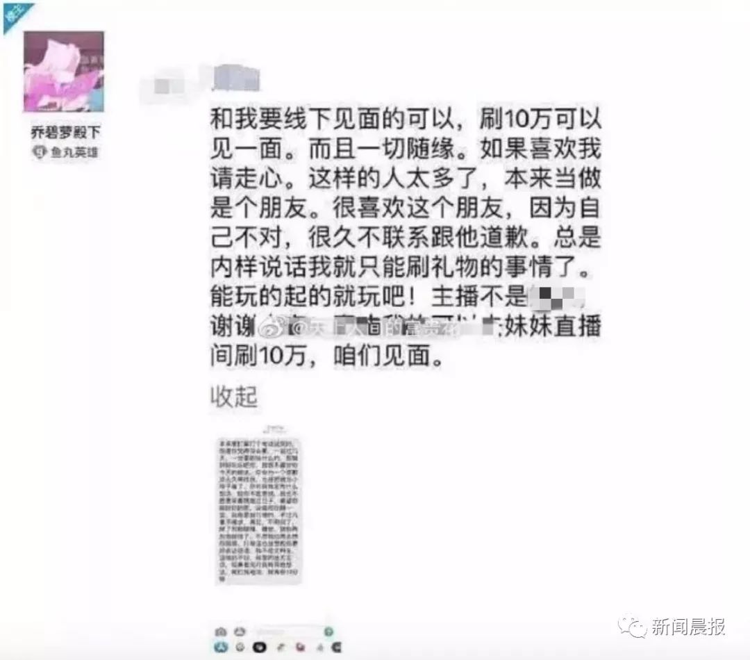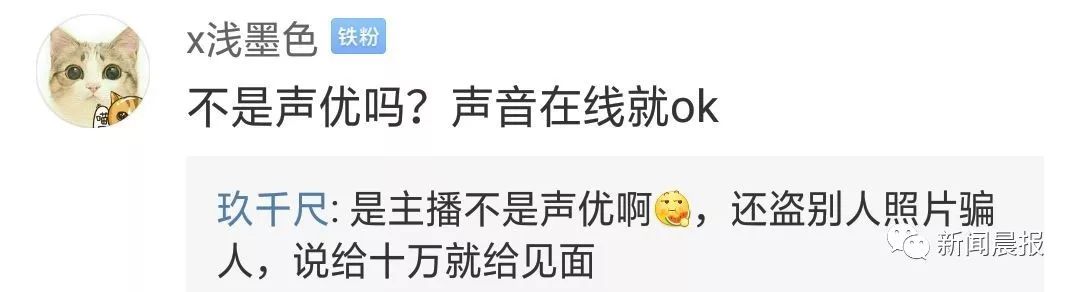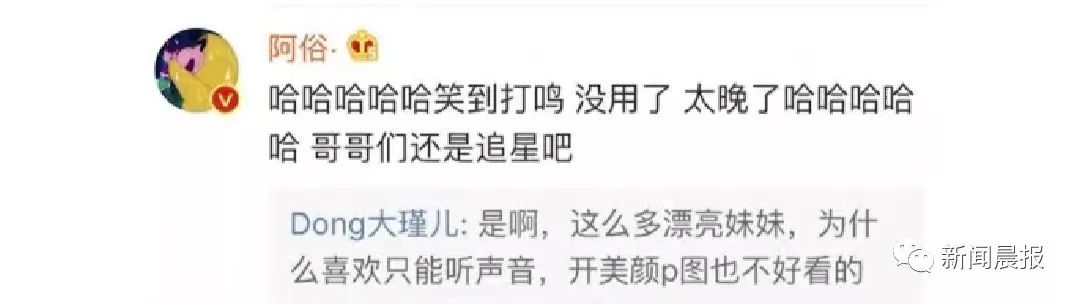 最近,某鱼有个网红主播,平时是不露脸 就靠甜美的声音圈粉 平时直播会拿二次元图遮脸, 说订阅10W就露脸结果直播时出BUG, 遮脸图片没显示…是一个58岁大妈…… 结果追随已久的男粉丝全崩溃了, 一名砸了10万刷礼物的男粉丝更是愤怒到销号 平时照骗 VS 真人⬆️ 这位不小心暴露真实长相的女主播 就是某鱼上的“乔碧萝殿下 ”, 她平常做直播一般都是用动漫图像挡住脸, 听声音非常可爱。据她自己发布的照片, 应该是位高颜值少女,就像这样⬇️ 7月25日她与人连麦直播时, 表示只要有10万订阅就露脸, 不料软件出现了bug, 导致遮挡用的二次元图没显示, 她的真实容貌被曝光, 画面中显示这是一位皮肤黝黑的中年女士。 而“乔碧萝殿下 ”已经露脸直播很长时间了 自己还没有发现, 对面的女主播故意问她是不是萝莉, “乔碧萝殿下 ”回答自己是58岁大妈, 身份证上是58岁的。 而直播间内粉丝已经快崩溃了, 纷纷大呼受骗,其中曾为其花费10万元, 排在榜一的男粉丝一怒之下也注销账号消失了。 有粉丝还曝出 这位女主播曾表示线下见面可以, 但得刷10万才行。 事件发生后, 乔莉萝殿下为了挽回局面, 不断发布自己化妆美颜后的视频, 证明自己颜值在线。 但粉丝仍不买账,还我10元钱。 有网友笑出了猪叫⬇️ 如果长成这样也可以当网红, 那我觉得自己也可以 也有网友表示 其实网上很多网红的脸都是假的 不是加了10几层的滤镜就是整了10几次的容 真真假假假假真真, 就看谁愿意上钩了 不过也有网友认为 只要声音ok就好,毕竟是声优! 但有网友不答应了, 主要是这位主播盗用别人照片骗人啊 而晨报君想说 只要你p图p得好 你也可以当网红 丑变美,胖变瘦,粗糙男人变妖艳女人 全都不是问题 秒变小仙女 ▼ 中年发福的白雪阿姨 P一P 回到一十七 ▼ 女巫变女神 小手一动就可能 ▼ 糙汉变萝莉 啥也别管就是P ▼ 喏~视频感受一下 所以奉劝男同胞们 网恋需谨慎 声音好听的不止有萝莉 还有无所不能的大妈哟! 来源:观察者网 |