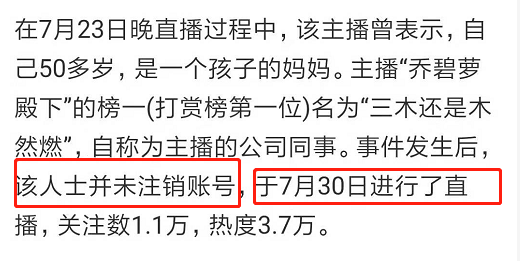 乔碧萝殿下的事情可谓是再次让网友的震惊了一把,不断撕扯着网友的下线,一个50多岁的奶奶利用自己的萝莉音冒充小萝莉,而且居然有榜一的粉丝直接打赏了其10多万的礼物,后来直言乔奶奶的真实头像曝光后,气得榜一直接注销了自己的账号,退出了平台~ 不过网友也蛮好奇到底是怎么曝光了真实面貌,当晚的情形据说是平台出现了bug,在乔碧萝殿下与其他主播连麦的时候突然露出了真容却不自知,还得意洋洋说自己的怎么用卡通画像装少女的方法,结果引起了网络的轰动,可是到底是如何呢?事情真的有这么简单吗? 随后没多久,乔碧萝殿下开始哭诉自己的真容还是蛮漂亮的,不是奶奶的模样,不过似乎网友和粉丝并不买账,乔奶奶似乎是破罐子破摔了,承认自己是花钱炒作的,而且说自己已经接了某声卡的代言和某相机类的代言,结果口碑似乎反转了,而且粉丝数量直线上升,直接从原来的不足十万粉丝,突破到百万,在某平台多次夺得第一,甚至几度霸占了热搜,这波操作真是让人看不懂。 但是呢,平台这个时候出手了,直接称乔奶奶影响不好,直接封了乔奶奶的账号,这怕是网红史最短的网红了,被封了账号后,乔奶奶不以为意,还说自己有开发平台的兴趣,还直接说出了却是花费了28万推广这件事,比如都花在那几个平台了,最后取得了这么大影响。 至于网友最最关系的榜一,也就是十多万直接打赏出的仁兄到底何方人士呢?乔碧萝称这个人其实是公司的同事,也是这场炒作中的一环,而且最后也没有注销账号,所以很多网友都可以放心了,这位仁兄好着呢?而且自己也在30日开了直播,人气和热度都蛮高的,也有可能因此大火一把呢(据新京报称),平常看到的某些出手阔绰的土豪,可能眼见未必为实。 这几乎就是网红乔碧萝殿下事情的前因后果了,至于乔碧萝奶奶后续如何发展,尚未得知,不过似乎有不少的粉丝,还蛮崇拜这位乔奶奶的。 小伙们对于这位乔奶奶怎么看呢?会继续粉她吗? 来源:搜狐娱乐 |