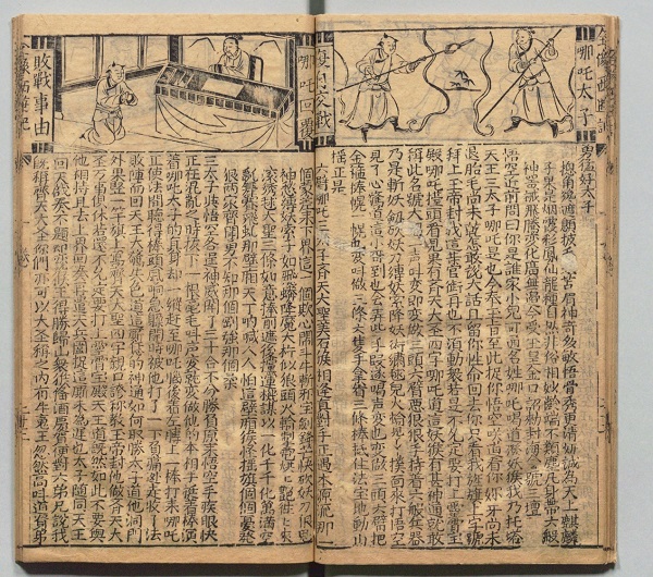 提到哪吒,人们大多会想起那位扎着冲天鬏,手持火尖枪,脚踏风火轮,大闹东海,大战孙悟空,既清秀可爱又骁勇善战的少年英雄神——哪吒是广受大众喜爱的一个形象,经常在通俗文艺和戏曲影视作品中出现。在最近上映的《哪吒之魔童降世》中,电影人对流行的哪吒故事进行了贴近现代审美的再创作;但正如现代人会对既定形象加以改编一样,古代的哪吒形象也不是一成不变的。事实上,哪吒这个人物有着相当长的历史,从印度佛教的护法神,到李靖之子,再到古典小说中的少年英雄,其形象经历了一条独特的演变轨迹。 哪吒神的佛教起源 哪吒并非中国本土原创,而是源自印度佛教神话。这一点从“哪吒”这个名字便能看出一些端倪:“哪”、“吒”二字连用,在汉语中几乎没有任何意义,不符合中国人的命名习惯;且古汉语在翻译外来语(尤其是翻译佛经)时,往往会在原有汉字的左边加上一个口字旁来表示,如:唵、吽、嘛、叭等——由此不难猜到,哪吒是个“外国神仙”。 哪吒(佛典中也作“那吒”),梵文全名为Nalakuvara或Nalakubala,音译作那罗鸠婆、哪吒俱伐罗、哪吒鸠跋罗等,简称为哪吒。哪吒是印度佛教的护法神,属于夜叉神的系统,如《不空羂索神变真言经》称“哪吒鸠钵罗药(夜)叉大将”。他是四大天王之一毗沙门天王的太子,如《毗沙门仪轨》称“天王第三那吒太子,捧塔常随天王”,职责是辅佐其父护卫佛法,驱除邪祟,守护世人。 佛教中的护法神、夜叉神,大多外表凶狠,以显示他们嫉恶如仇,剽悍勇猛,所以哪吒往往以凶恶、忿怒的外表示人,如《北方毗沙门天王随军护法仪轨》称“尔时,哪吒太子,手捧戟,以恶眼见四方”,又如《人天眼目卷之一》称“忿怒哪吒把须弥,一擘百杂碎”。哪吒在佛经里的形象颇为独特,也就是人们熟知的“三头六臂”(有的版本也作“八臂”),如《佛果圜悟禅师碧严录》:“明眼汉,没窠臼,有时孤峰顶上草漫漫,有时闹市里头赤洒洒。忽若忿怒哪吒,现三头六臂。忽若日面月面,放普摄慈光。” 围绕哪吒的故事有很多,如诞生为一团肉、剔骨割肉还父母、莲花化生等都为今人所熟知,但其实这些故事或多或少都与佛教有关。以哪吒“析肉还母、析骨还父”为例:这个故事已经不能在今天的佛经里看到,不过它曾一度是宋朝以后的僧人津津乐道的话题,如《禅宗颂古联珠通集》卷一的讨论:“那吒太子析肉还母,折骨还父,然后现本身运大神力为父母说法。颂曰:何者是身?分明听取山河国土现金躯,十方世界在里许。万劫千生绝去来,山僧此说非言语。骨肉都还父母了,未知那个是那吒?”由此可以推断,哪吒析肉析骨的故事应当出自佛典,虽然事件的起因、经过不详,但是它无疑为之后民间文学的改编提供了原型。 上面的介绍只涵盖了哪吒形象的外表、身份等特征,没有涉及到他的性格,不过我们倒是能从北宋文学家苏辙的《哪吒诗》中略知一二: 北方天王有狂子,只知拜佛不拜父。 佛知其愚难教语,宝塔令父左手举。 儿来见佛头辄俯,且与拜佛略相似。 佛如优昙难值遇,见者闻道出生死。 嗟尔何为独如此,业果已定磨不去。 佛灭到今千万祀,只在江湖挽船处。(见《栾城集》) 从这首诗中可以提取出不少信息:第一,哪吒是佛教的崇信者,“只知拜佛”,以佛为父;第二,哪吒与父亲的关系可能比较恶劣,所以“不拜父”,需要用宝塔来加以调教;第三,一个“狂”字凸显出哪吒叛逆的性格特点,而它“愚难教语”、“不拜父”的表现可能会被中国人视为“不孝”——苏辙深谙佛学,其造诣可能比其兄苏轼更高,因此这首诗对哪吒形象的刻画,应当能在一定程度上反映北宋时期的佛经故事或民间佛教传说,而该形象的一些元素也会在后世传播中得到保留。 融入中国文化的三太子 毫无疑问,哪吒的形象不可能一成不变。伴随着佛教在中国不断传播,本土文化对外来宗教的吸收、借鉴,以及民间信仰的更新换代,哪吒的形象也逐渐从原来的佛教背景中脱离出来,开始向中国化的方向发展。 不过,要谈论哪吒进入中国后的形象转变,就不能不提到他的父亲,毗沙门天王。 “毗沙门”是梵语Vaisnavara一词的音译,意译作多闻、遍闻等。毗沙门天王是佛教中极其重要的护法神,专门护佑北方地域,与持国天王、增长天王、广目天王合称“四大天王”,但较后三者具有更加突出的地位。他的职责主要是护佛、护经、护国、护众生等,也曾被视为财神和福神。毗沙门天王的形象通常都是身披甲胄、头戴宝冠、右手持棒(或戟)、左手擎塔;而由于左手中的塔是该天王的一个显著标志,所以百姓也俗称其为“托塔天王”。根据佛经记载,毗沙门共有五位太子,分别是最胜、独健、哪吒、常见、禅只,其中当数独健、哪吒二人名气较大,不过毕竟身为太子,其名气仍然依附于毗沙门极高的影响力。 北宋银杏木函彩绘毗沙门天王像(苏州博物馆藏) 中国的毗沙门天王信仰始于唐朝,经西北于阗地区传入中原。唐代来华的密宗高僧不空在《北方毗沙门天王随军护法仪轨》中记述自己曾受唐玄宗之邀,设坛作法,请毗沙门天王显圣,解救被吐蕃军队围困的安西城的异事。经过不空等人的推介,毗沙门天王开始受到唐朝皇帝的极力推崇,并在军队中得到普遍的祭祀,因此其作为战神的神格也格外突出。唐朝之后,毗沙门天王信仰在中国盛极一时,上至朝廷,下至百姓,不仅为官方的祭典所认