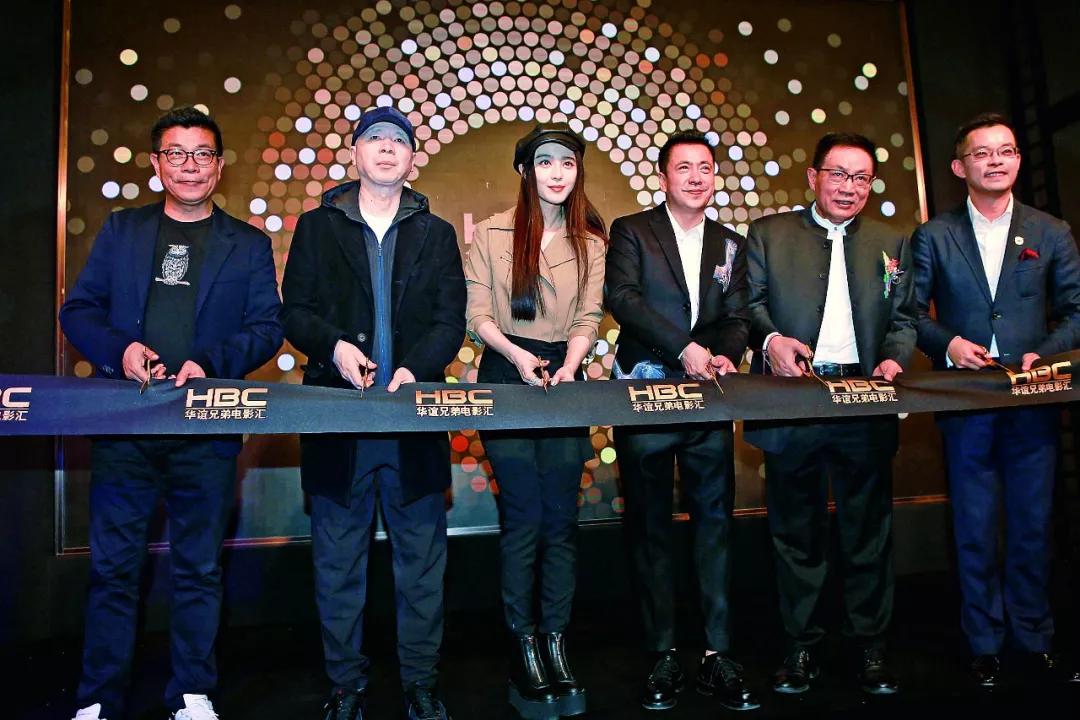 2016年11月16日,“华谊兄弟电影汇”在北京举行开业典礼,(左一至左四)王忠军、冯小刚、范冰冰、王忠磊等人亮相助阵。图/视觉中国