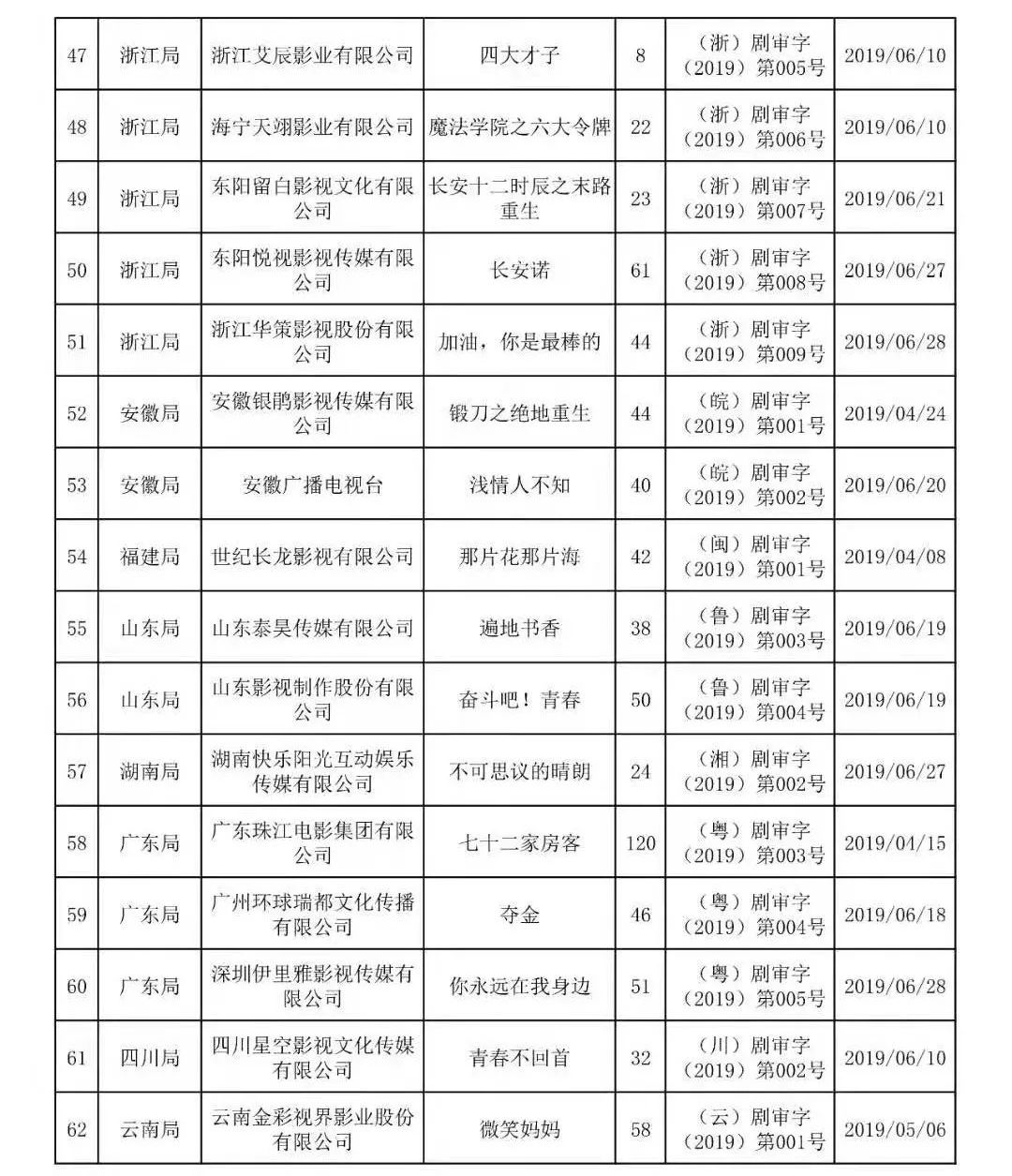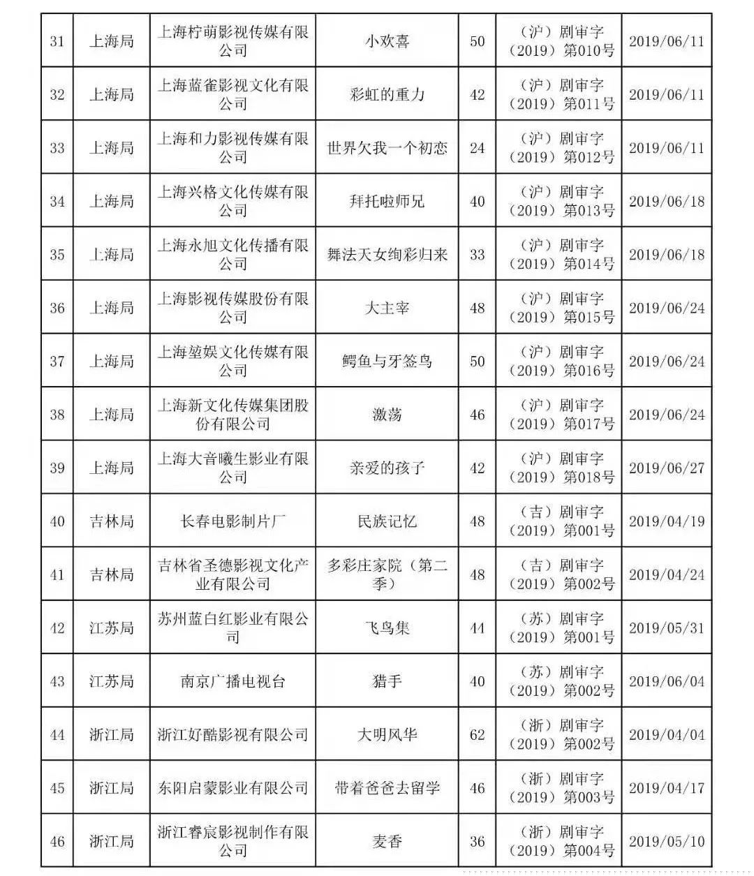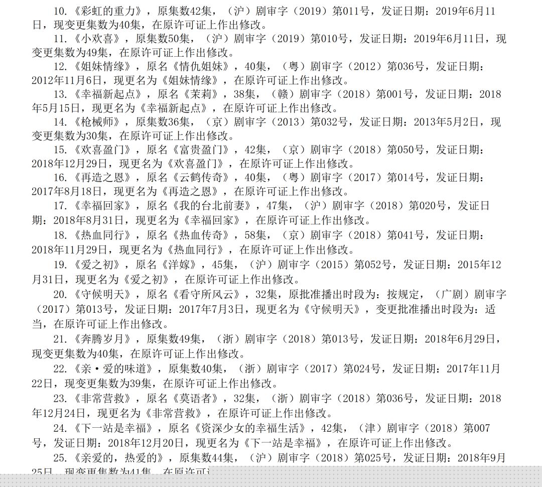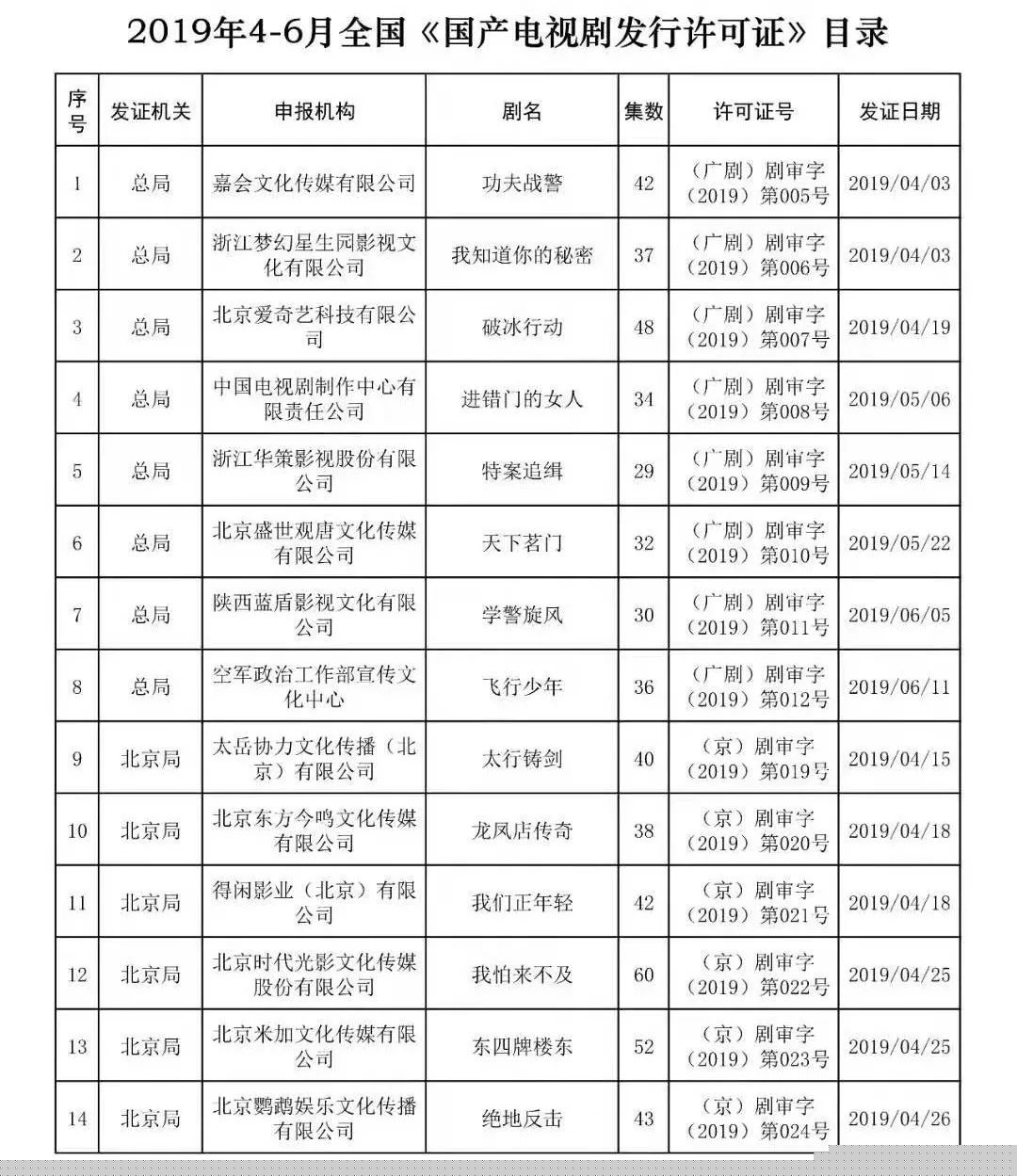 全国国产电视剧发行许可情况的通告