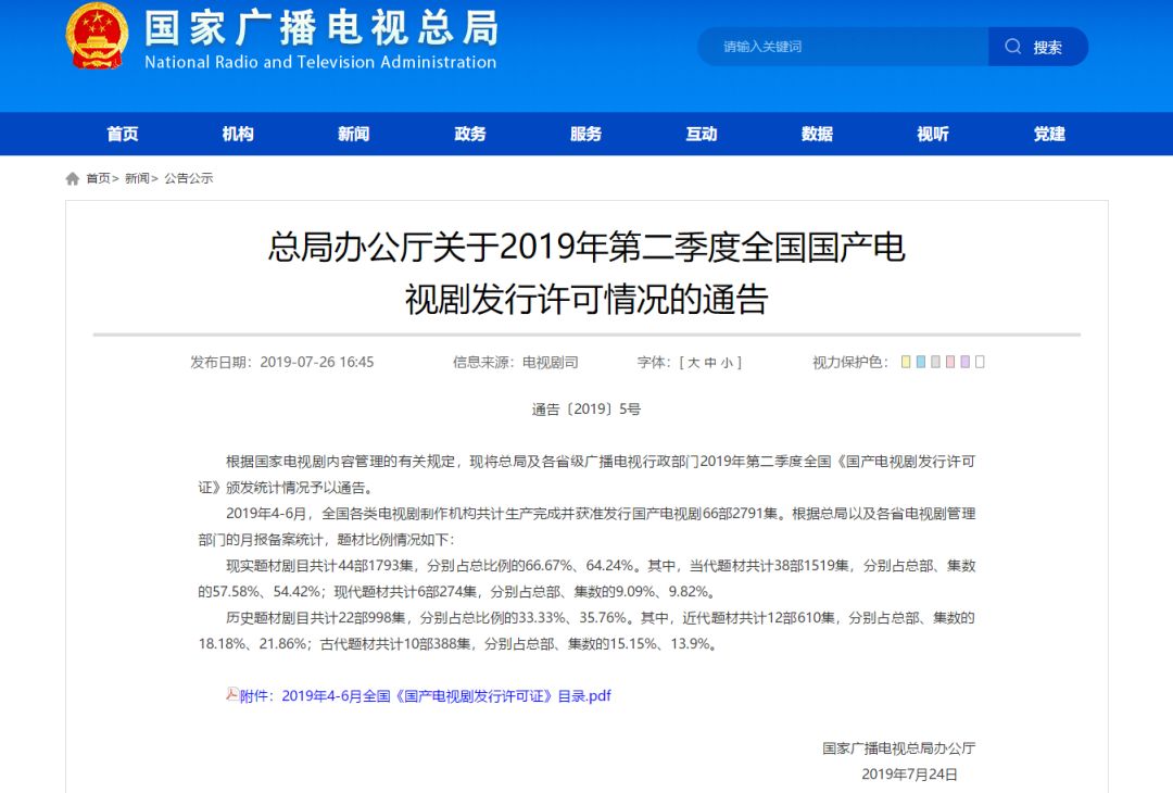 广电总局关于2019年第二季度