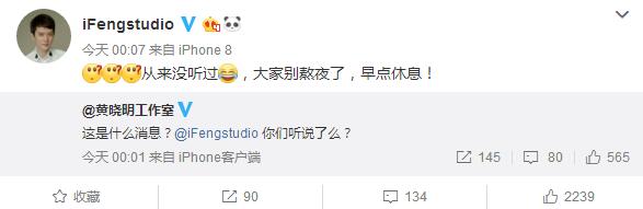24日凌晨,黄晓明工作室发文“这是什么消息?你们听说了么? ”并艾特冯绍峰工作室,随后冯绍峰方转发写道“从来没听过,大家别熬夜了,早点休息!”双双辟谣传闻。 来源:搜狐娱乐 |