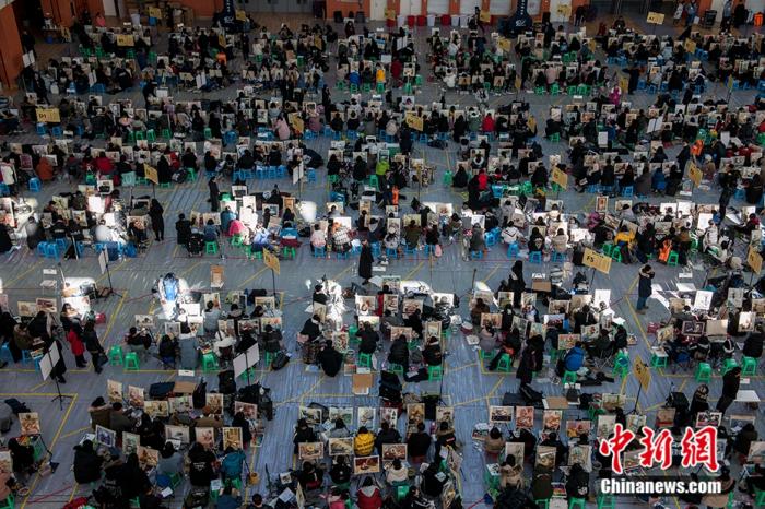 资料图:2019年2月,中国传媒大学2019年艺考复试拉开帷幕。图为上千考生同场“绘梦”,场面十分壮观。中新网记者 李骏 摄