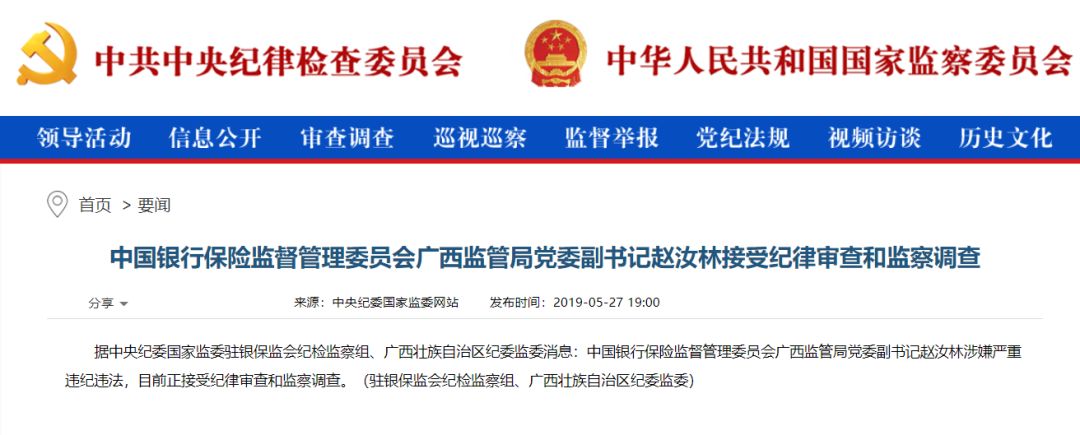 省级监管局领导落马的3人中,最早被通报的是广西监管局党委副书记赵汝林。