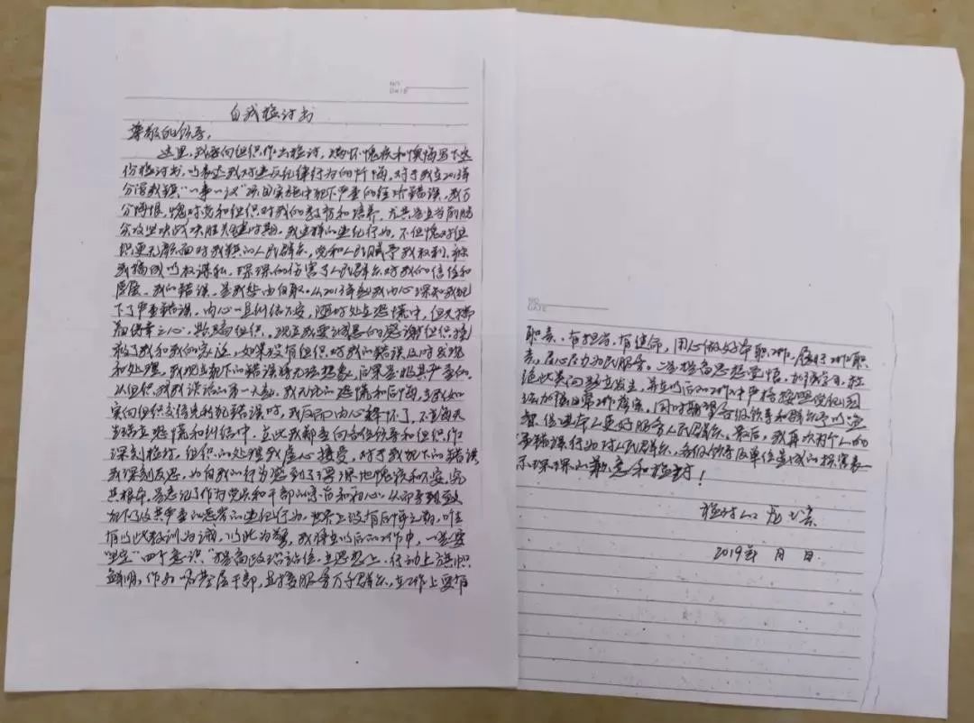 “现在,我诚恳地感谢组织挽救了我及我的家庭,如果组织没有及时发现我的错误,对我进行处理,我犯下的错误将无法想象,后果极其严重......”龙七贵在检讨时说。
