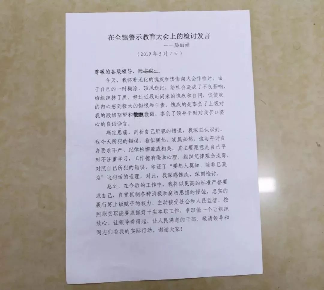 政知君注意到,今年5月7日,该镇还召开了警示教育大会,龙七贵和滕丽娟,在全镇干部职工、村干部共150余人面前,分别检讨。