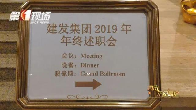 暗访人员从酒店门外摆放的指引牌上看到,这里进行的是一家国有企业2019年的年终述职会。经了解,这家企业名叫光明区建设发展集团有限公司,是光明区属的一级国有企业,述职会共有80人参会。