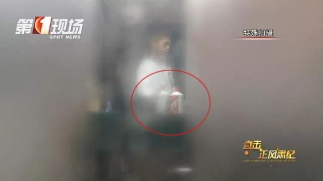 暗访人员发现晚宴的用酒,全部来自宴会厅角落一间隐蔽的小房间内,由该公司专门安排的员工和酒店工作人员多人把守,寸步不离房门,外人不得入内。暗访人员从这个房间毛玻璃的一条缝隙处,看到了宴会所用的白酒,全部都是茅台!