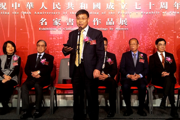 由香港中外文化艺术交流协会主办的“墨韵盛世耀香江•庆祝中华人民共和国成立七十周年•名家书画作品展”开幕仪式3月6日在香港大会堂低座展览厅举行。 此次开幕仪式由香港中外文化艺术交流协会会长杨涛先生主持,中央人民政府驻香港特别行政区联络办公室台务部部长杨流昌、香港中华出入口商会副会长李秀恒、香港道教联合会副主席黄成益分别致辞。一同出席的主礼嘉宾还有民政事务局署理局长陈积志、中国香港体育协会暨奥林匹克委员会会长霍震霆、香港中外文化艺术交流协会荣誉会长贝钧奇、中央人民政府驻香港特别行政区联络办公室艺术处处长彭婕以及紫荆杂志社总经理张春生等。观众席就座的还有众多来自香港和内地文化艺术领域的嘉宾,现场气氛热烈。 此次展览共展出44位中国当代著名书画家的61幅书画精品,作品题材广泛,涵盖了书法、山水画、花鸟画、人物画以及油画等。这些艺术作品,饱含深情,呈现出中国气派、中国风格和中国传统文化的精髓,使人们从艺术角度了解中华人民共和国成立70年来的发展史。参展作者均是中国当代书画界的名家,有近代杰出的画家、齐白石的弟子李可染,西泠印社社长、潜心国学研究的书法家饶宗颐,中国书画艺术委员会主席韩美林以及燕堂诗社社长、中国诗书画研究院名誉院长文怀沙等名家代表。 香港中外文化艺术交流协会会长杨涛主持开幕仪式。 中央人民政府驻香港特别行政区联络办公室台务部部长杨流昌。 饶宗颐作品。 文怀沙作品。 刘文西作品。 王美芳、赵国经作品。 张斌作品。 |