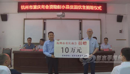 此次杭州重庆商会向我县四个学校的贫困优生捐资10万元现金。商会会长王勇表示,今后在社会救济中将继续发挥重要作用,支持山区教育事业的发展,号召商会会员以及社会各界爱心人士尽已所能,帮助他人,服务社会,并将这一优良传统更好地传承和发扬下去。