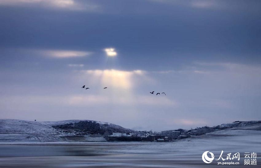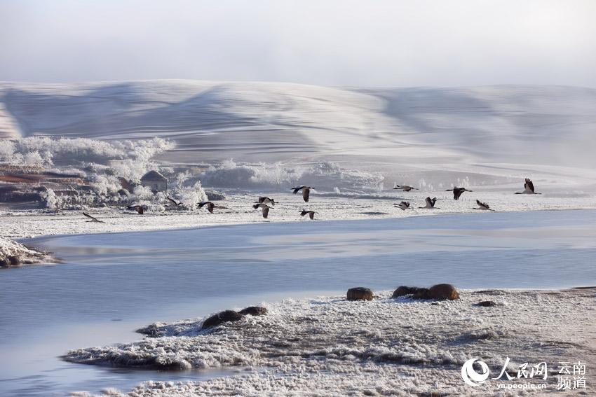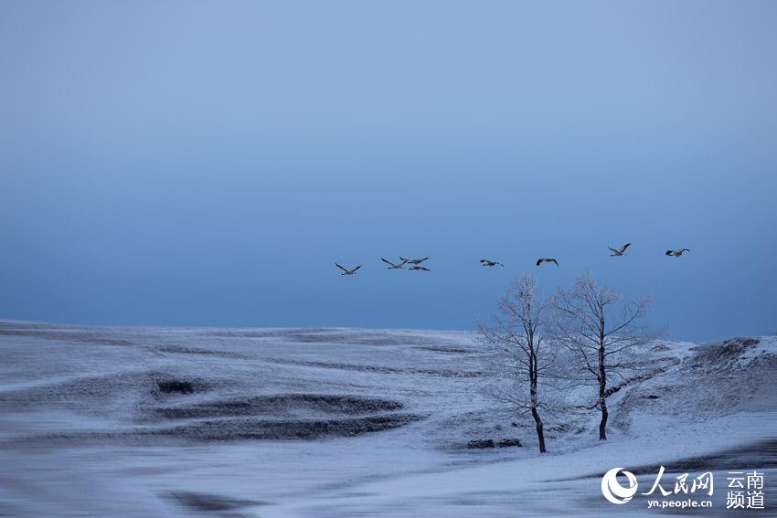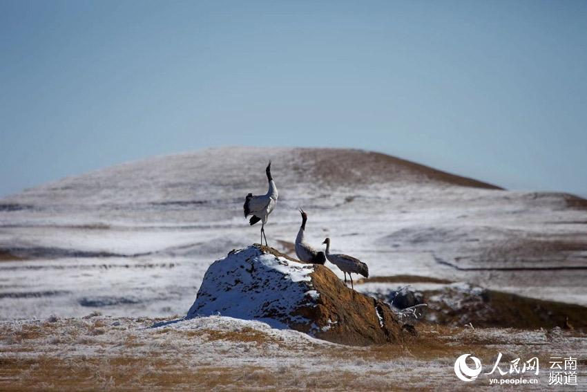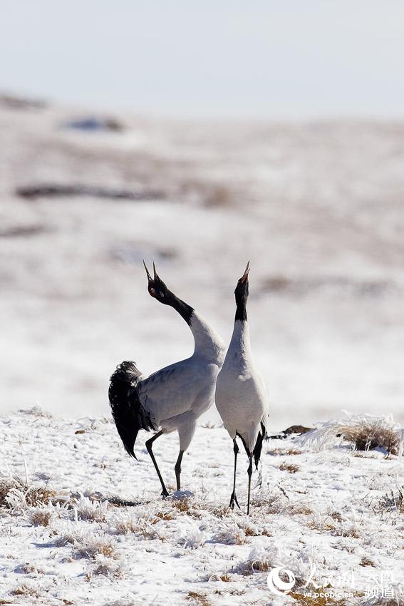 每到冬季,黑颈鹤陆续飞抵云南昭通大山包黑颈鹤国家级自然保护区,场面蔚为壮观。降雪后,大山包的高山草甸变成了一个银装素裹的冰雪世界,飞翔其间的黑颈鹤姿态优美,与雪地蓝天构成一幅幅水墨画,令人惊艳。 在云南昭通大山包黑颈鹤国家级自然保护区内,不仅能听到婉转动听的鹤鸣,还能看到它们优美的倩影舞姿。截至2020年1月10日,飞临大山包大海子越冬栖息的黑颈鹤达到1433只。 黑颈鹤是国际公认的珍稀濒危动物,被誉为“鸟类熊猫”,是国家一级重点保护野生动物。云南省昭通市大山包黑颈鹤国家级自然保护区建于2003年,是全国最大的黑颈鹤越冬栖息地之一。 近年来,随着退耕还林、湿地恢复、食物源基地、易地搬迁等生态项目的有效实施,大山包保护区生态环境逐步改善,为候鸟提供了优质的越冬栖息地。 |
