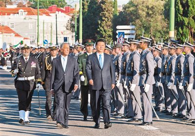 (记者管克江、杜尚泽)当地时间12月4日,国家主席习近平同葡萄牙总统德索萨举行会谈。两国元首一致同意,以中葡建交40周年为新的历史起点,推动中葡友好合作不断取得新成果,谱写中葡关系发展的新篇章。 习近平指出,中葡友好交往源远流长,两国建交39年来,始终相互理解、相互尊重、彼此信任、互利合作,双边关系历经国际风云变幻考验,一直健康稳定发展。中国古人说:交得其道,千里同好,固于胶漆,坚于金石。中葡就是这样的好朋友、好伙伴。中方赞赏葡方坚持一个中国政策,愿同葡方在涉及彼此核心利益和重大关切问题上继续相互理解和支持。双方要密切高层交往,加强两国政府、立法机构、政党、地方、民间交流,深化政治互信,筑牢两国友好政治根基。双方要以签署中葡政府间共建“一带一路”合作谅解备忘录为契机,全面加强“一带一路”框架内合作,促进互联互通。双方要扩大务实合作,做大做强现有项目,扩大双边贸易往来,营造更多合作增长点。双方要密切人文交流,加快推进里斯本中国文化中心筹建工作,加强教育、广播影视等领域交流。双方要加强多边协调,密切在重大国际和地区问题上的沟通和配合,共同维护多边主义和自由贸易。 习近平指出,中欧是全面战略伙伴。中国一贯坚定支持欧洲一体化,希望葡方继续在欧盟内部发挥积极作用,维护中欧关系发展正确方向。 德索萨表示,热烈欢迎习近平主席。葡中两国交往历史悠久,彼此之间相互了解,这是我们双边关系发展的坚实基础。明年将迎来葡中建交40周年,葡萄牙期待着深化同中国在经贸、金融、人文等领域交流合作,欢迎中国企业扩大对葡投资。葡萄牙支持“一带一路”倡议,愿成为陆上丝绸之路和海上丝绸之路在欧洲的枢纽。葡中在许多国际问题上立场相近,都支持多边主义,反对单边主义,支持自由贸易,反对保护主义,要密切在多边机构的协调。葡萄牙支持加强欧中关系,愿继续深化葡语国家同中国的合作。 会谈后,两国元首共同会见了记者。 会谈前,德索萨总统在帝国广场为习近平举行隆重欢迎仪式。 习近平和夫人彭丽媛乘车抵达帝国广场时,德索萨上前热情迎接。两国元首登上检阅台。军乐队奏中国、葡萄牙两国国歌,同时鸣21响礼炮。在德索萨陪同下,习近平检阅仪仗队,随后前往观礼台观看分列式。广场外,簇拥的人群挥舞着中国国旗,高声呼喊热烈欢迎习主席。 欢迎仪式结束后,习近平向葡萄牙历史上最伟大的诗人、民族英雄卡蒙斯墓献花环。 在前往总统府途中,葡萄牙国民卫队骑兵仪仗队随行护送。抵达时,德索萨在停车处再次迎接,礼兵在沿途两侧列队,小号手吹号致敬。习近平与葡方陪同人员握手,德索萨与中方陪同人员握手。 当晚,习近平和彭丽媛与德索萨共同参观了“海上丝绸之路”故宫精品文物展。 丁薛祥、杨洁篪、王毅、何立峰等参加上述活动。 《 人民日报 》( 2018年12月05日 01 版) |